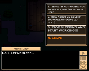 You can talk to many NPCs all over Torisia as long as you can interact with them (Spacebar by default). This lets you talk to them. There are 2 types of dialogues: